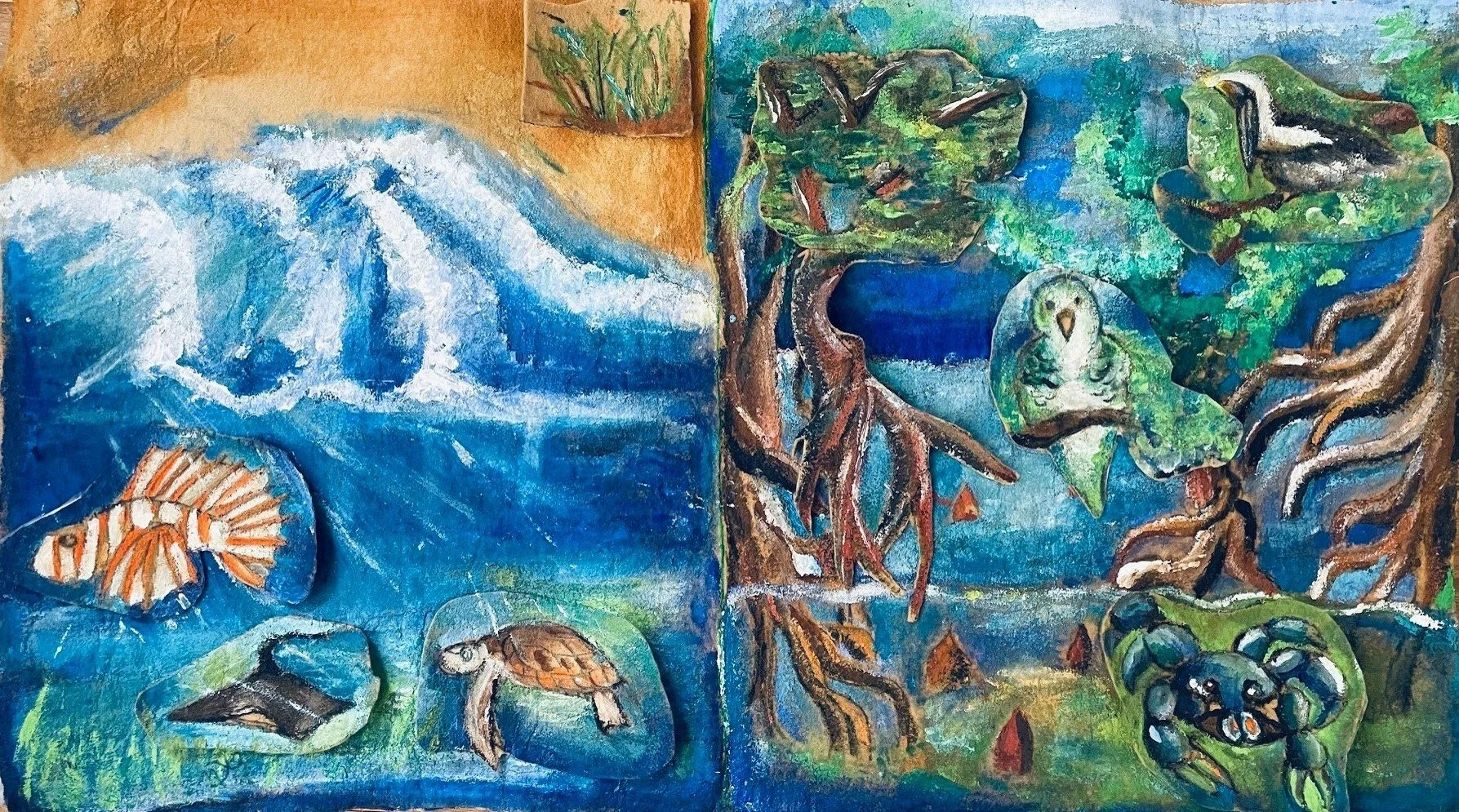 I created an interactive mural ‘‘ Healing Garden” within each pocket on the wall; I gave away seeds for native species as well as examples of simple action steps to combat the problems like the housing crisis and environmental